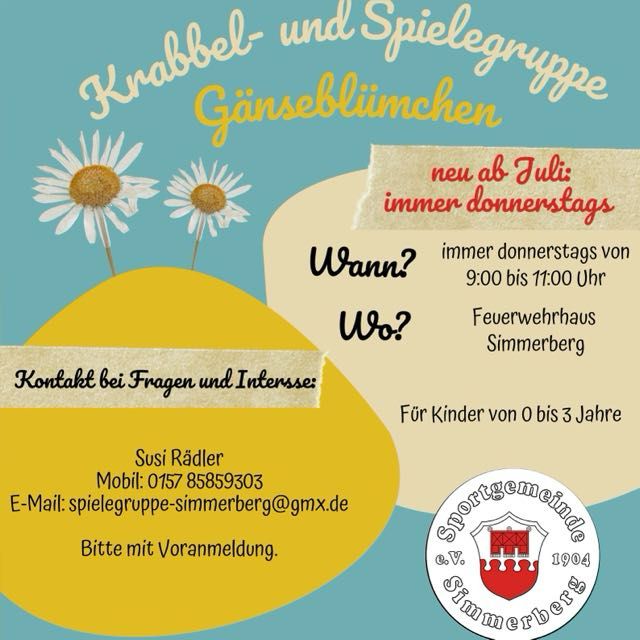 Wir treffen uns immer donnerstags von 09:00 - 11:00 Uhr im Feuerwehrhaus in Simmerberg zum Singen, Bewegen, Spielen und gemütlichen Beisamensein.